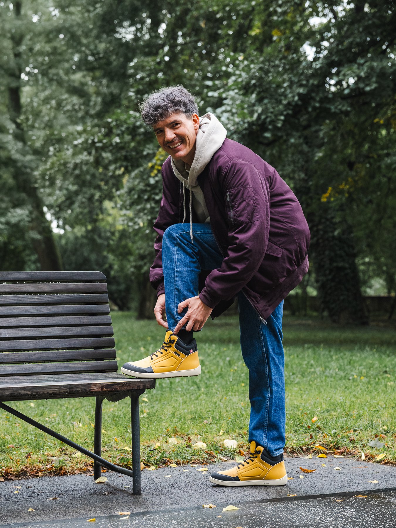 All-round waterproof barefoot shoes with excellent insulation properties and the new ThermoGrip Neo sole in mustard. Don´t worry about your feet getting wet in these ankle shoes made of vegan materials. Additionally, enjoy great thermal comfort thanks to Primaloft technology. The cleverly designed grip will prevent your shoes from slipping even in rough terrain. Resistance to wear and tear is ensured by the upper made of the latest technical materials.